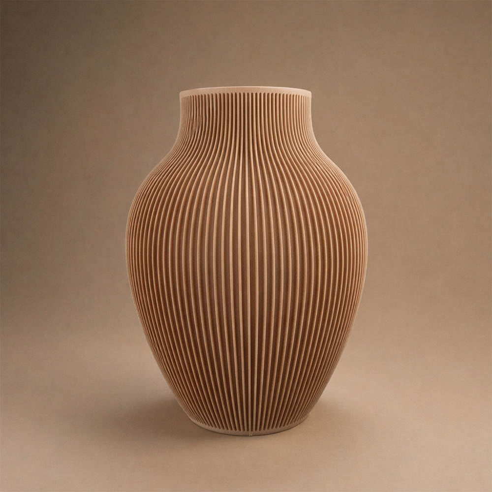 O vază modernă, printată 3D din material de înaltă calitate, perfectă pentru flori naturale sau uscate. Designul său minimalist și textura geometrică adaugă un plus de eleganță oricărui spațiu.